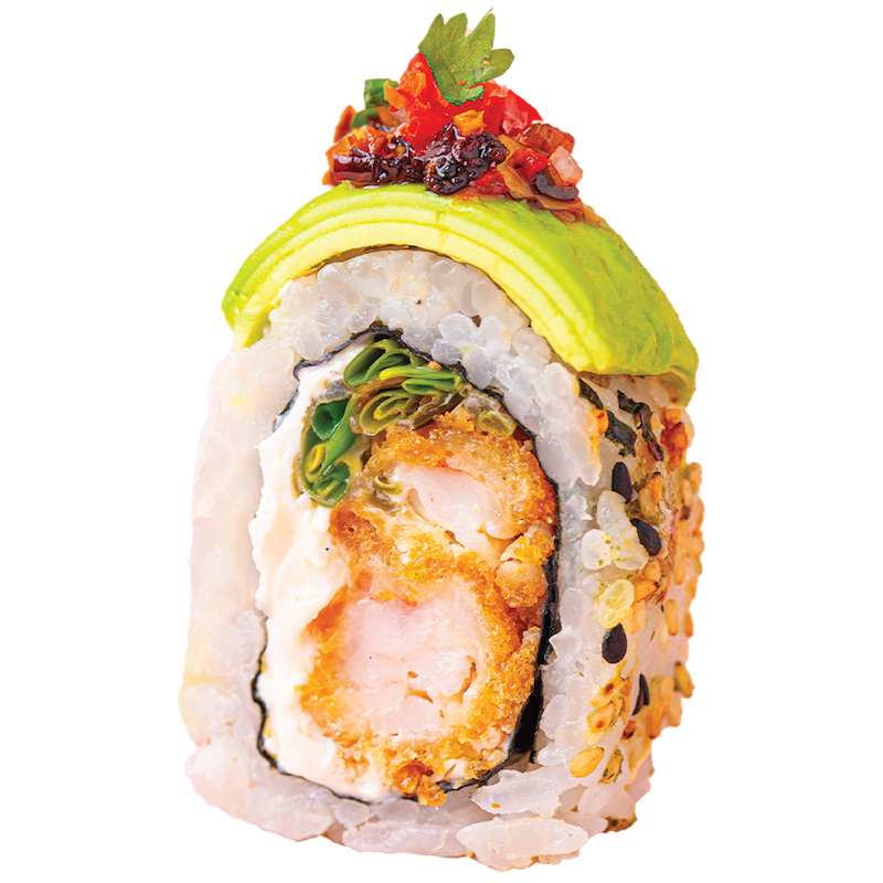 Sushi Rice, shrimp, philadelphia cheese, fresh avocado, tonkatsu, tare sauce (10 Pcs).