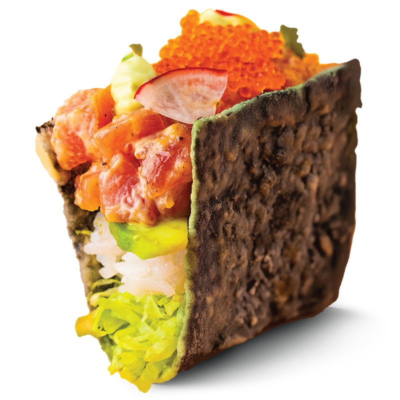 A box of 8 customizable nori tacos featuring 4 crunchable options.